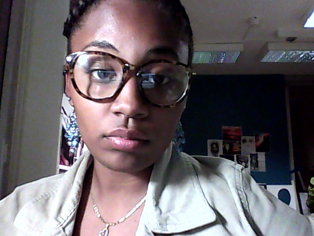 This is random but I was going through my pictures and I found this one from Spring semester. I looked so clean this day lol my face was shiny (or oily), lip gloss and eyebrows looking right and my braid (barely visible) on the front of my head was so neat. And the earrings, glasses and jacket helped me pull this off too — or did I? Anywho lol I just like this picture 🙂